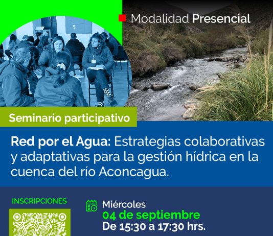 El próximo miércoles 4 de septiembre, se realizará el Seminario Participativo "Red por el Agua: Estrategias colaborativas y adaptativas para la gestión hídrica en la cuenca del río Aconcagua."
