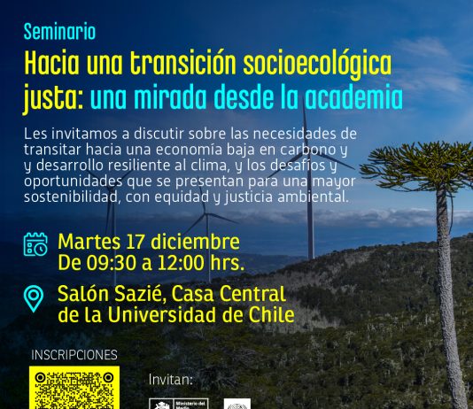 El Centro de Ciencia del Clima y la Resiliencia CR2 y el Ministerio del Medio Ambiente le invitan al Seminario Hacia una Transición Socioecológica Justa: una mirada desde la academia, a desarrollarse el martes 17 de diciembre, entre 9:30 y 12:00 hrs en el Salón Sazié de la Casa Central de la Universidad de...
