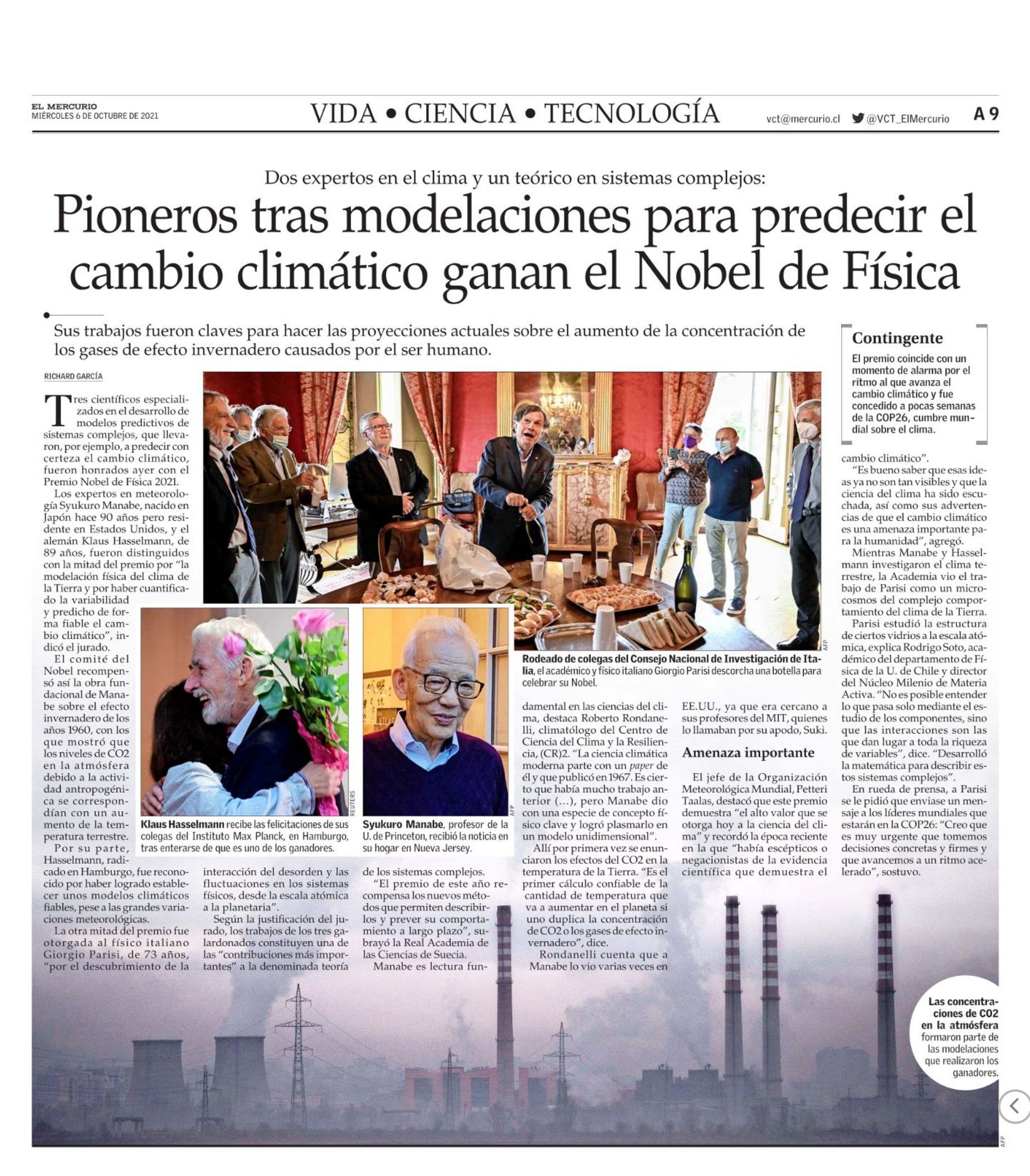 Tres científicos especializados en el desarrollo de modelos predictivos de sistemas complejos, que llevaron, por ejemplo, a predecir con certeza el cambio climático, fueron honrados ayer con el Premio Nobel de Física 2021.