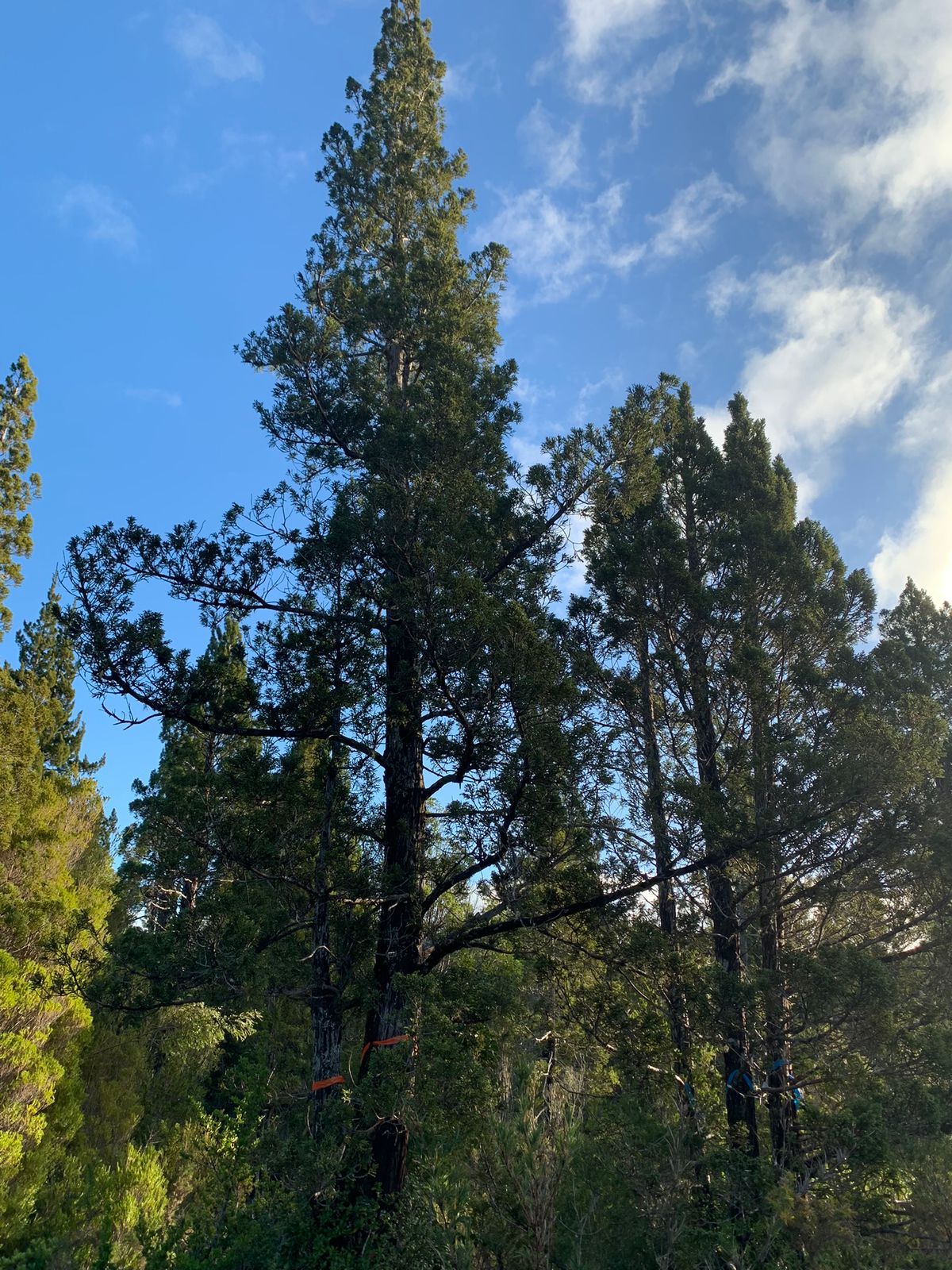 Figura 3. Al borde del antiguo camino se encuentran alerces de gran tamaño que podrían ser talados para la construcción de la ruta T-720.