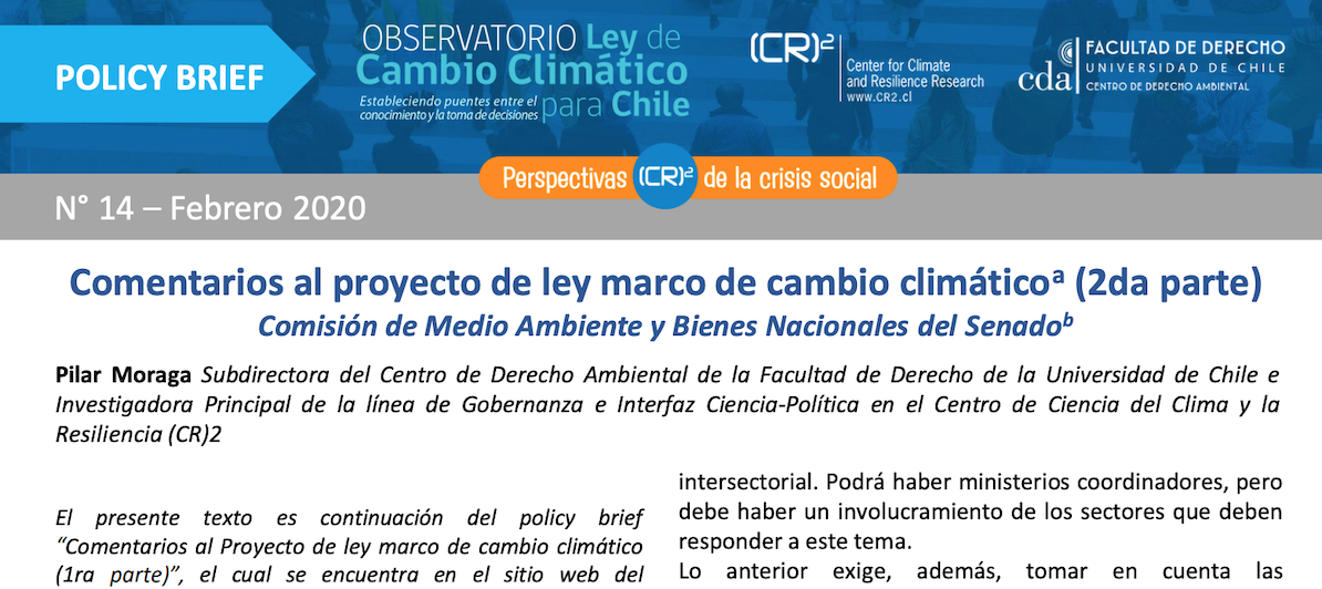 Policy brief Observatorio Ley de Cambio Climático | Comentarios al proyecto de Ley Marco de Cambio Climático (2da parte)