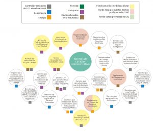 Los cuerpos legales que deben ser modificados para implementar las medidas propuestas pertenecen a distintas jerarquías normativas: constitucional, legal y administrativa, lo cual refleja los distintos niveles de complejidad para avanzar hacia la carbono neutralidad. A su vez, cabe destacar que cada cuerpo normativo identificado tiene efectos sobre varios sectores productivos, lo cual confirma el carácter transversal e intersectorial del cambio climático, y la necesidad de contar con una mirada integrada y holística del proceso de transición a una economía baja en carbono, incluyendo el marco legal (Figuras 1. 2 y 3).
