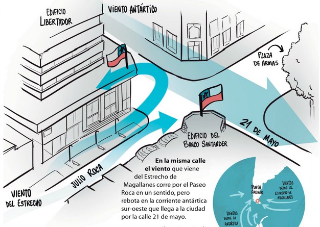 Por qué estas banderas flamean en sentido contrario en Punta Arenas (Las Últimas Noticias)