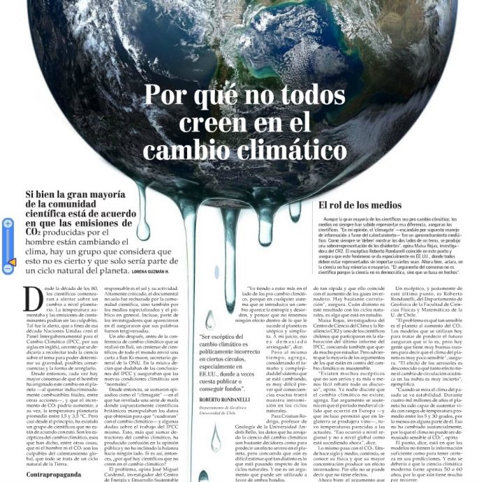 (El Mercurio, 22 de junio) Si bien la gran mayoría de la comunidad científica está de acuerdo en que las emisiones de CO2 producidas por el hombre están cambiando el clima, hay un grupo que considera que esto no es cierto y que sólo sería parte de un ciclo natural del planeta. Por Lorena Guzmán.