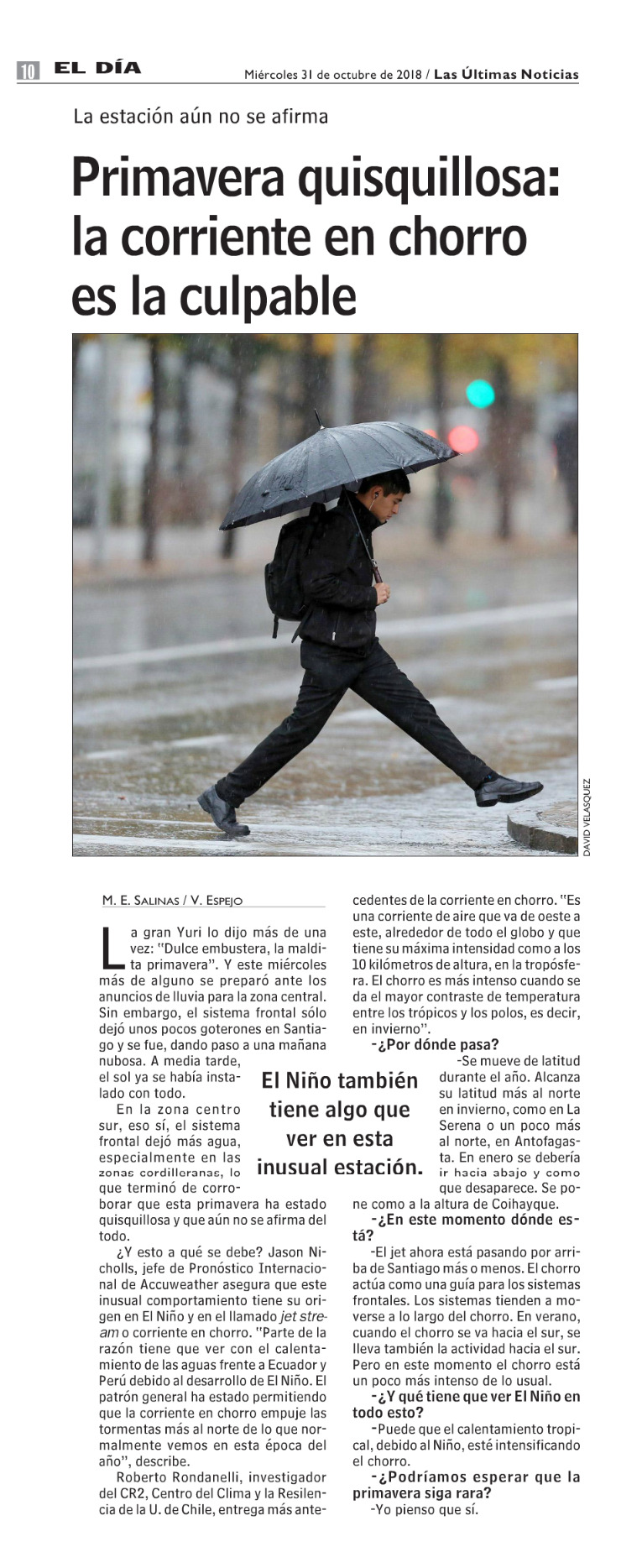 En la zona centro sur, eso sí, el sistema frontal dejó más agua, especialmente en las zonas cordilleranas, lo que terminó de corroborar que esta primavera ha estado quisquillosa y que aún no se afirma del todo.