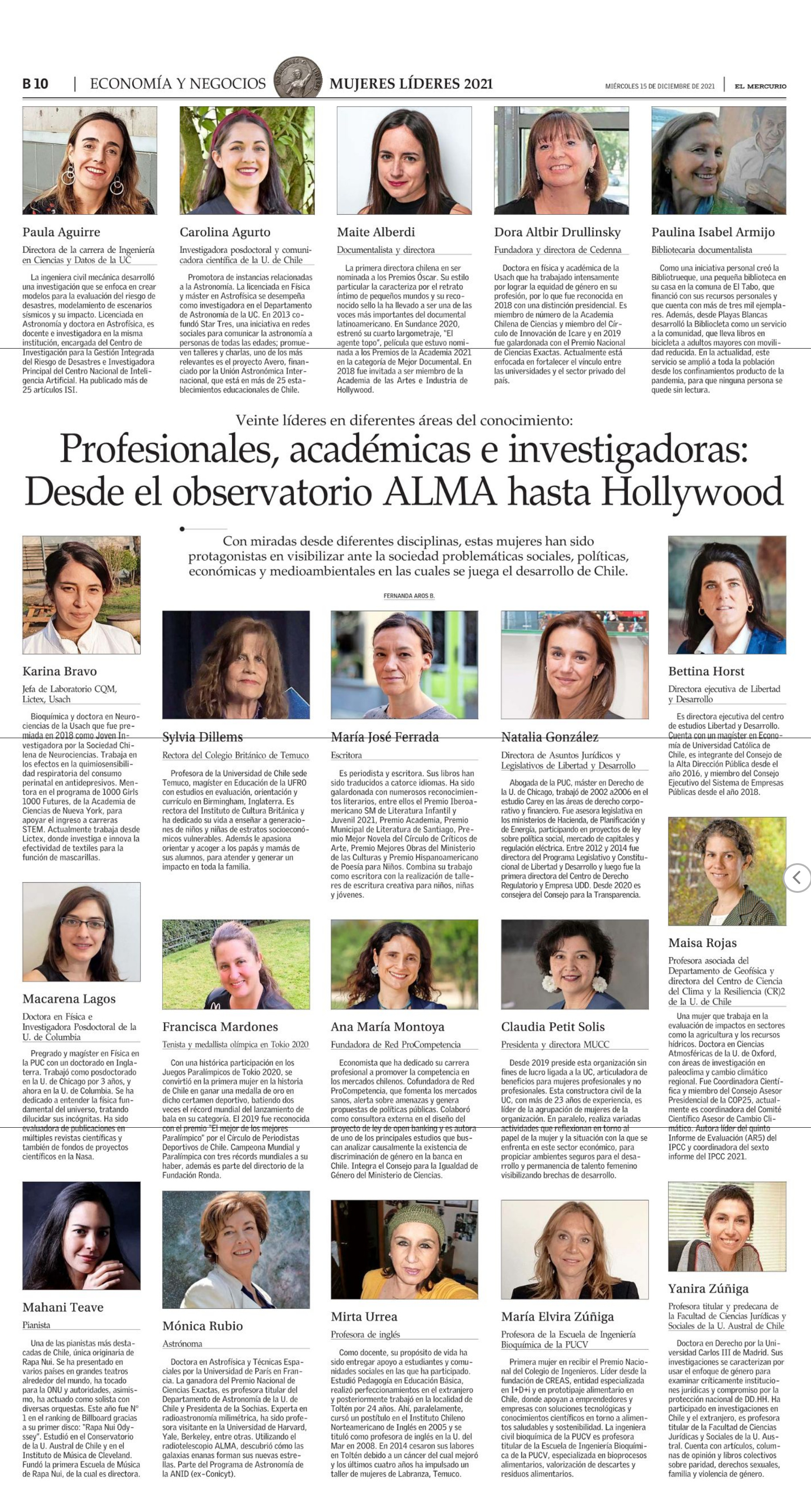 Profesionales, académicas e investigadoras: Desde el observatorio ALMA hasta Hollywood (El Mercurio)