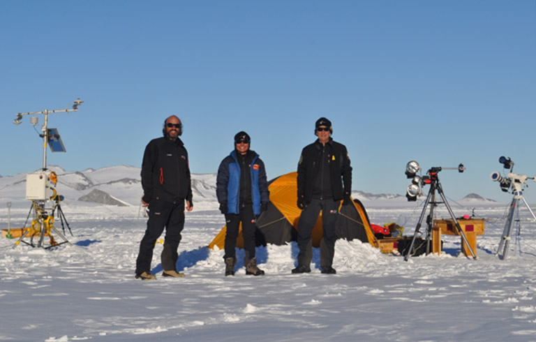 La participación del profesor del DGF y subdirector del Centro de Ciencia del Clima y la Resiliencia, (CR)2, en la misión de INACH fue posible gracias a la adjudicación de un proyecto conjunto con el académico del Departamento de Astronomía de la Universidad de Chile (DAS), Patricio Rojo, en el XXVI Concurso Nacional de Proyectos de investigación Científica y Tecnológica Antártica.