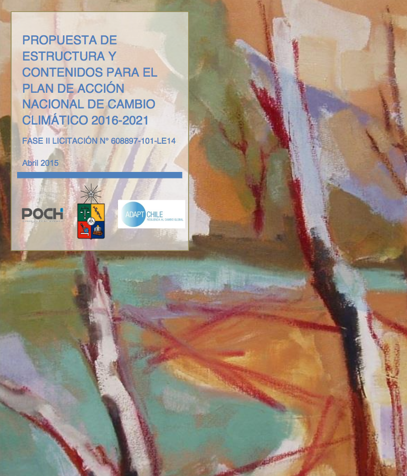Esta publicación debe ser citada como: Aldunce P. Bello F. Bórquez R. Farah ML. Echeverría I. Indvik K. Lillo G. Montenegro N. Orell MI. Paneque M. Rebolledo I. Reveco C. Román-Figueroa C. Sepulveda E. Fuster R. Adler C. Costa L. Guijón R. Howden M. Keenan R. Neri C. Rojas M. Rudnick A. 2015. Definición de elementos PANCC 2016-2021, Licitación N° 608897-101-LE14 del Ministerio del Medio Ambiente. 200p.