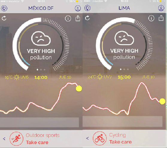 Partículas por millón (PPM): la concentración de los contaminantes es saber las partes que hay de una sustancia en otra. La aplicación permite entender el impacto de los principales contaminantes en nuestros cuerpos: “Medimos partículas finas (PM10 y PM2.5). Óxidos de nitrógeno (NO2). La capa de ozono (O3). Óxidos de azufre (SO2). Para calcular el índice Plume, una medida del impacto en la salud de estos contaminantes, es en base a las directrices de la OMS”. Cuenta que “corredores, ciclistas urbanos, padres de niños pequeños, viajeros y expatriados en zonas contaminadas revisan la aplicación. Incluso, corredores cambian su horario para no practicar deporte en horas de contaminación”.
