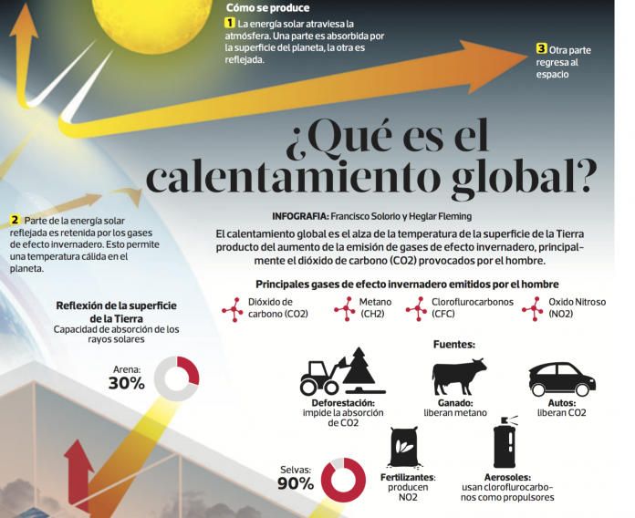 Lo normal es que alrededor del 31% de la radiación que llega del Sol se refleje directamente de vuelta al espacio por la atmósfera y la super- ficie (nieve y hielo), que otro 20% sea absorbida por la atmósfera, mientras el resto por los océanos y la tierra.