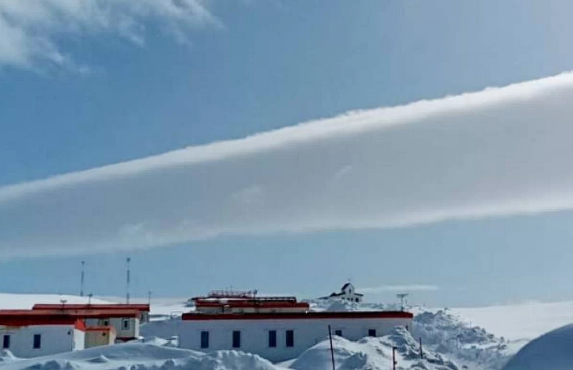 Una inusual y hermosa imagen se vio este lunes en la Antártica, específicamente en Bahía Fildes. A José Oyarzún, miembro de la Fuerza Aérea, le pareció tan particular, que decidió tomarle una foto.
