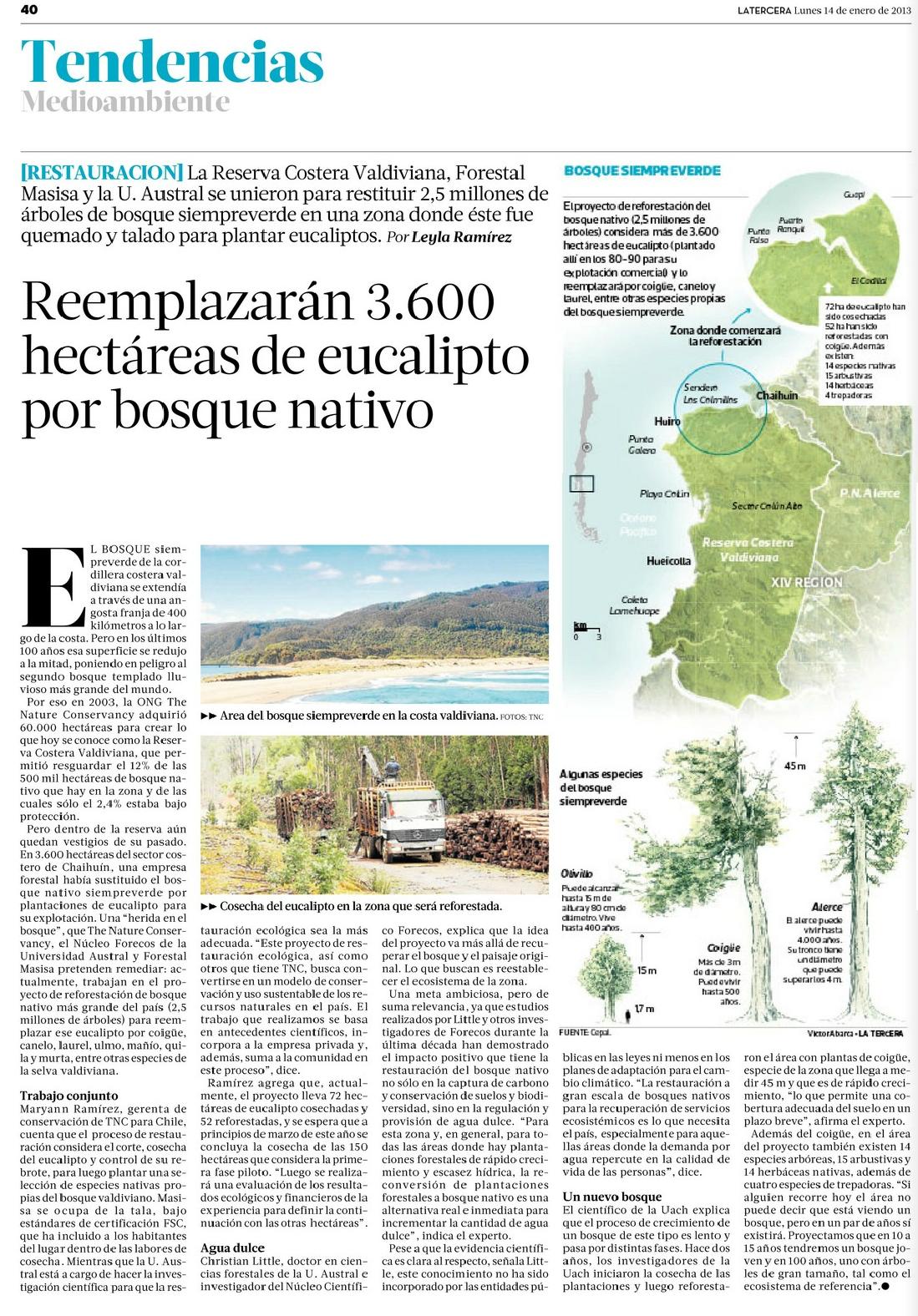 Nuestros colegas de la Universidad Austral investigan la Reserva Costera y la restauración de bosques nativos mediante la reconversión de plantaciones de eucaliptos, la cual provee la base para desarrollar el objetivo 2 de nuestra linea de investigación sobre Servicios Ecosistémicos. Más noticias aquí.
