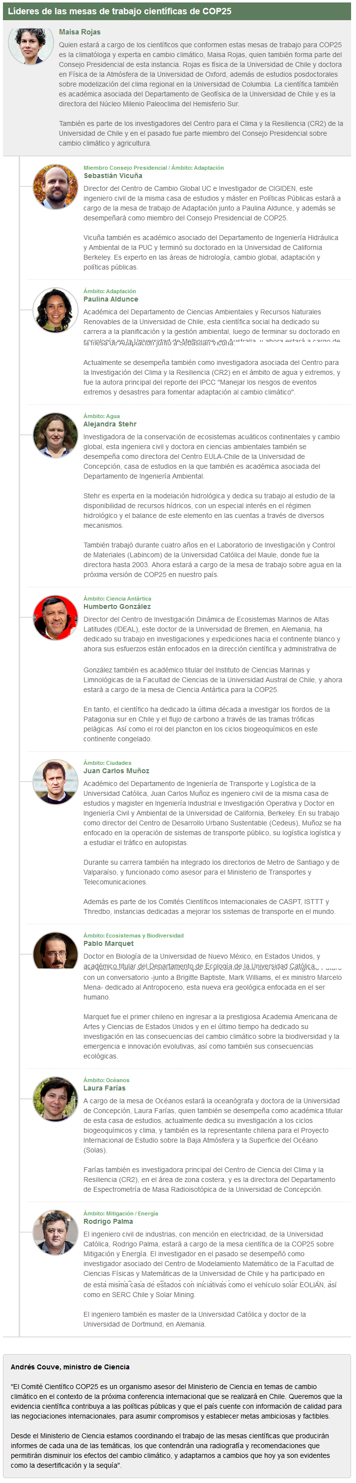 Revisa quiénes son los nueve científicos que liderarán las mesas de trabajo en COP25 (Emol)