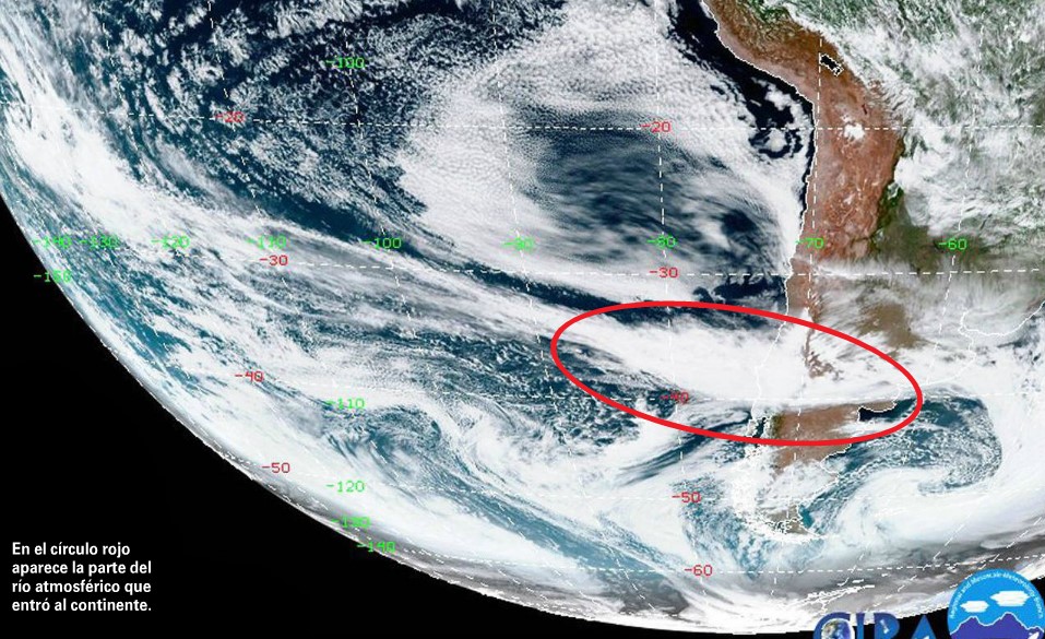 Satélite muestra el río atmosférico que empapó el sur (Las Últimas Noticias)