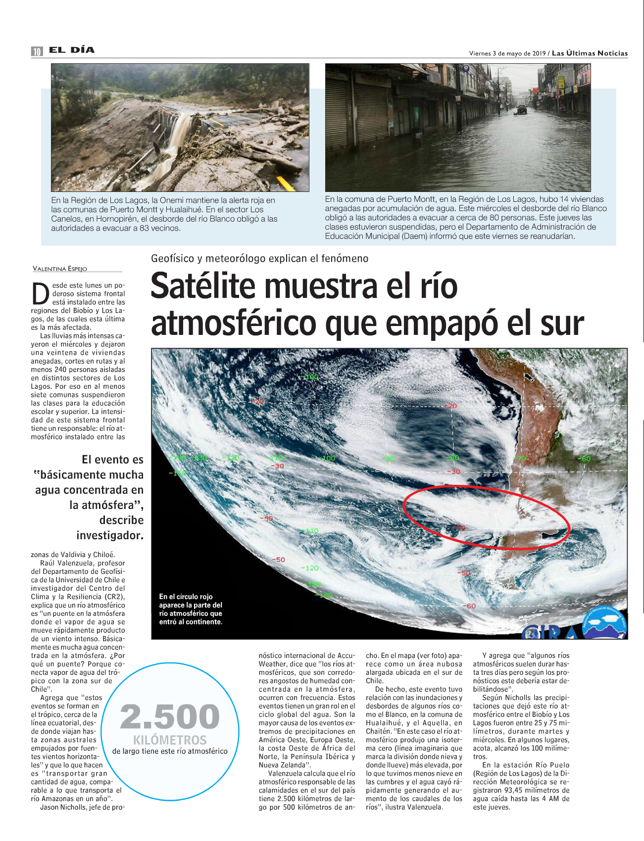 Satélite muestra el río atmosférico que empapó el sur (Las Últimas Noticias)