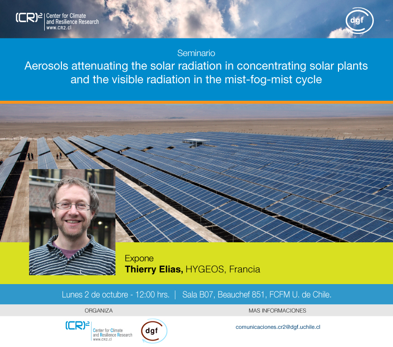 2 de octubre | Seminario DGF-(CR)2 «Aerosols attenuating the solar radiation in concentrating solar plants and the visible radiation in the mist-fog-mist cycle”