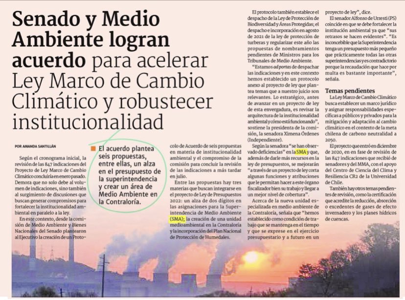 Acerca de la iniciativa de unidad especializada en medio ambiente de la Contraloría, señala que «hemos establecido como condición de trabajo que se mantenga en el tiempo y que eso se exprese en el ejercicio presupuestario y también a futuro en un proyecto de ley», dice la senadora.
