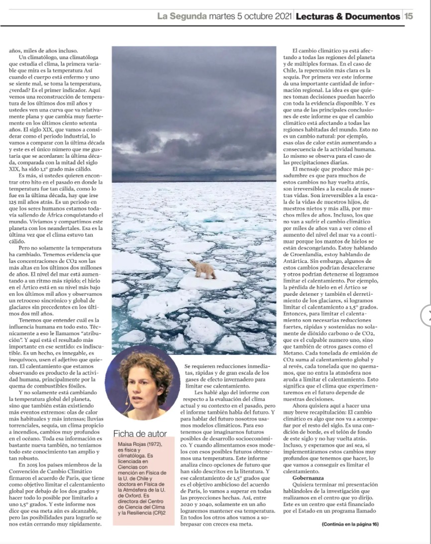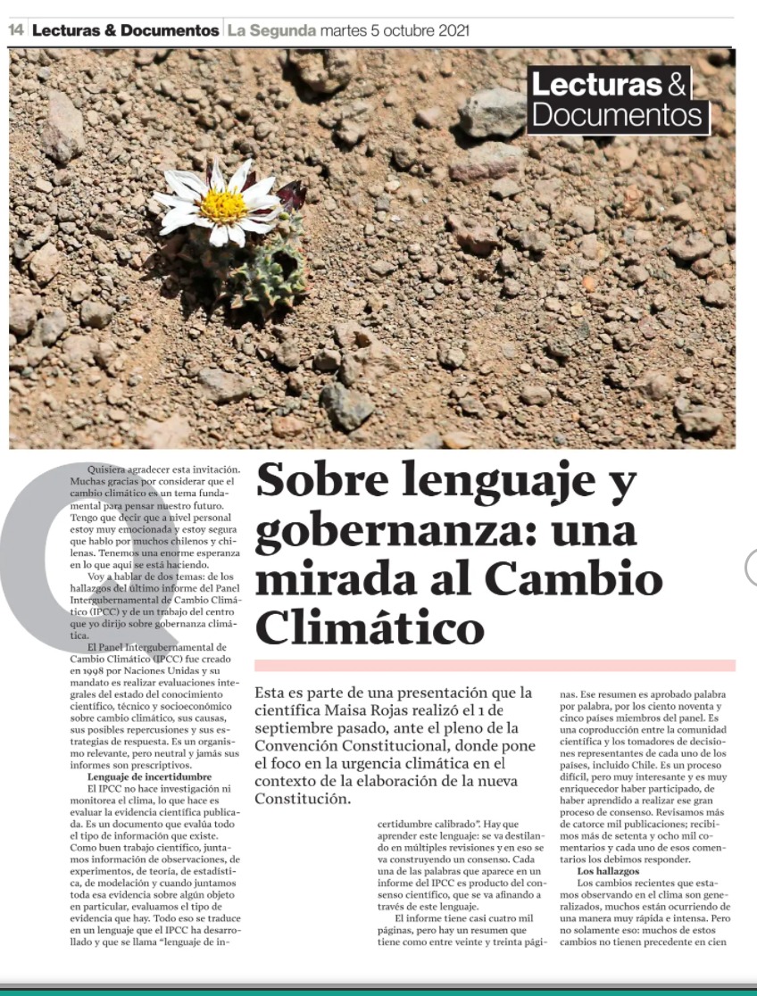 Esta es parte de una presentación que la científica Maisa Rojas realizó el 1 de septiembre pasado, ante el pleno de la Convención Constitucional, donde pone el foco en la urgencia climática en el contexto de la elaboración de la nueva Constitución.