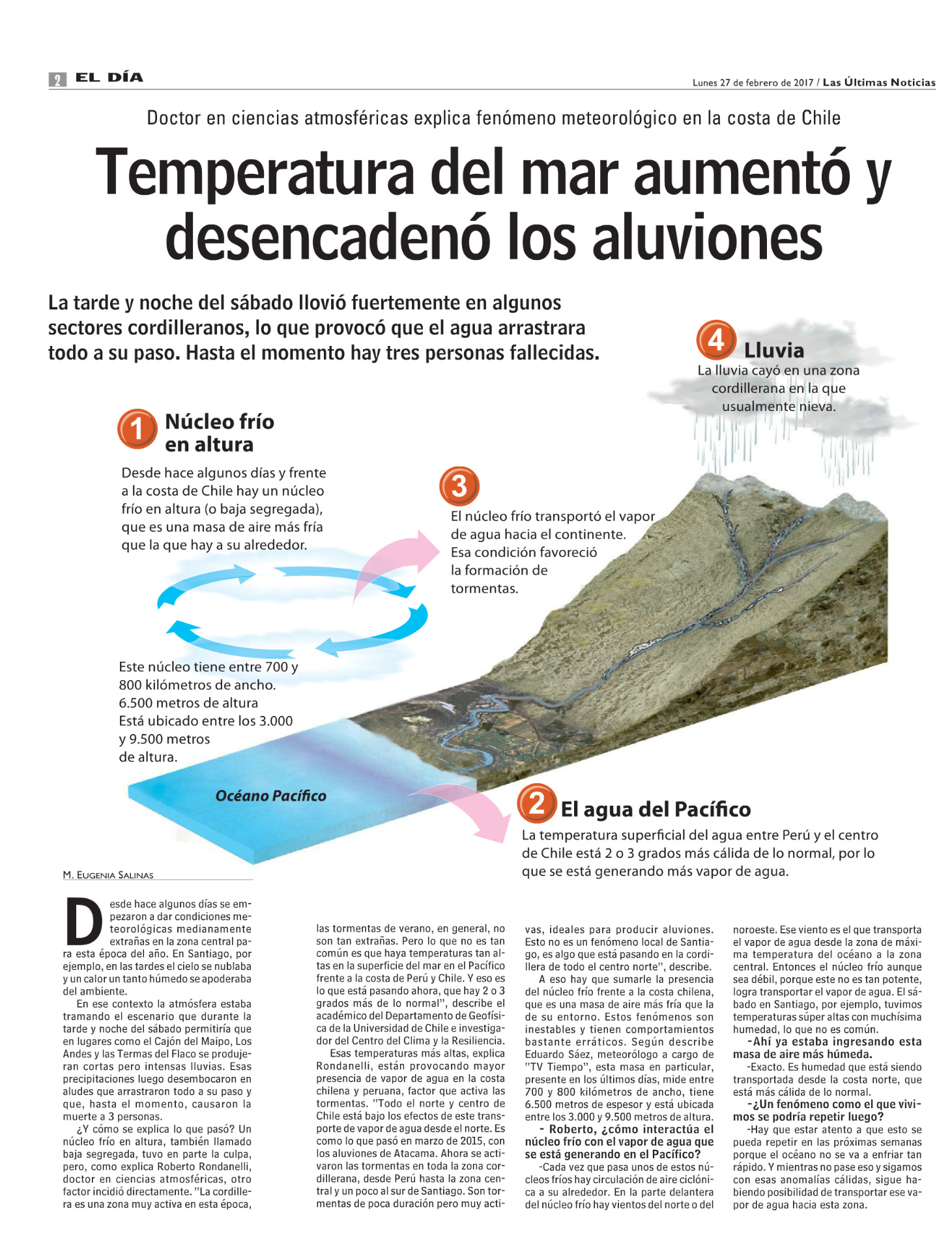 En ese contexto la atmósfera estaba tramando el escenario que durante la tarde y noche del sábado permitiría que en lugares como el Cajón del Maipo, Los Andes y las Termas del Flaco se produjeran cortas pero intensas lluvias. Esas precipitaciones luego desembocaron en aludes que arrastron todo a su paso y que, hasta el momento, causaron la muerte de 3 personas.