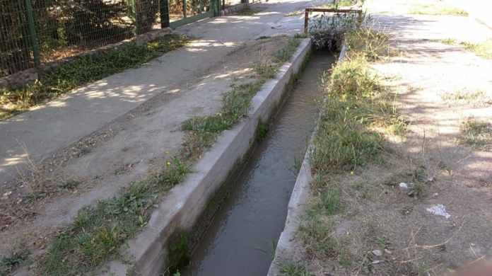 Canal en el frontis de la sede Comunidad de Aguas Las Rosas, La Pintana