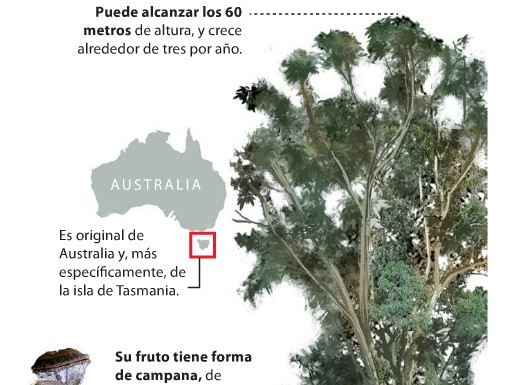 El eucaliptos globulus o eucaliptus blanco es australiano y tiene una gran capacidad de reproducirse. Incluso si se corta o si se cae, lo más probable es que rebrote de sus restos.