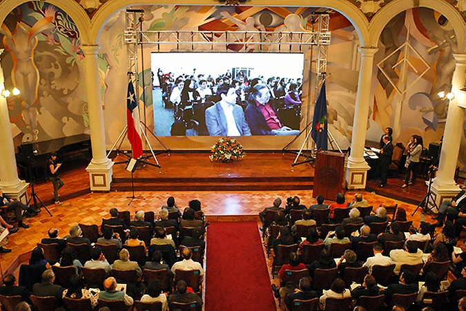 La actividad contó con la participación de las más altas autoridades universitarias, encabezadas por el Rector Ennio Vivaldi, y el vicerrector de Investigación y Desarrollo, Flavio Salazar, quienes resaltaron la importancia del trabajo académico y la posición de liderazgo que ocupa la Universidad de Chile como motor del conocimiento en el país. También fueron parte de la ceremonia el prorrector, Rafael Epstein; la vicerrectora de Asuntos Académicos, Rosa Devés; la vicerrectora de Extensión y Comunicaciones, Faride Zeran; y el vicerrector de Asuntos Estudiantiles y Comunitarios, Juan Cortés.