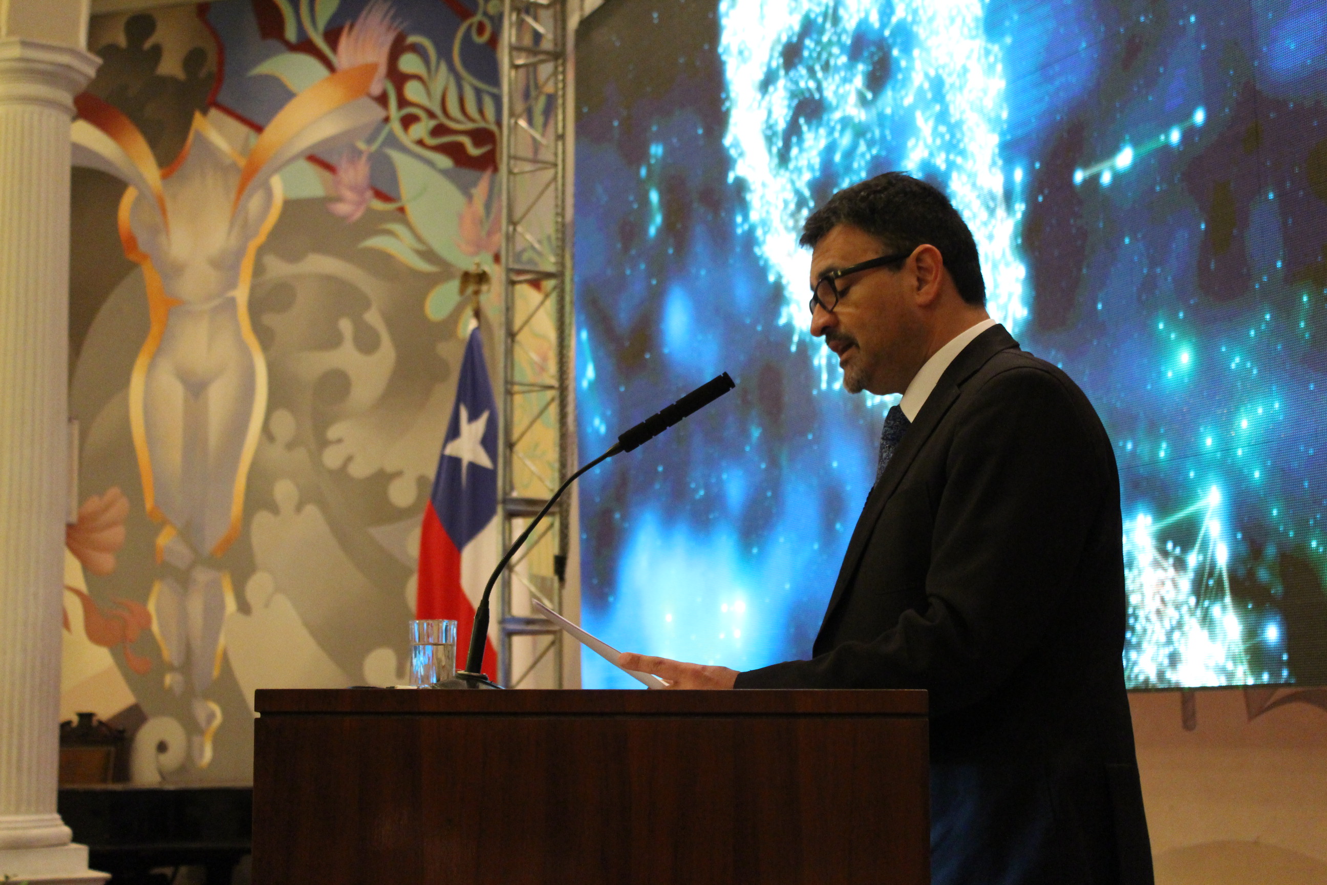 Junto con subrayar la excelencia del trabajo impulsado por los investigadores, innovadores y creadores homenajeados a través de esta ceremonia, el vicerrector de Investigación y Desarrollo de nuestro plantel, Flavio Salazar, destacó la pertinencia del mismo en conexión con los desafíos de la sociedad. Durante la apertura del evento, además, realizó un balance de los principales avances de la Universidad de Chile en el fomento a la colaboración multidisciplinaria, en la creación de una institucionalidad para la innovación y en el fortalecimiento de la internacionalización.