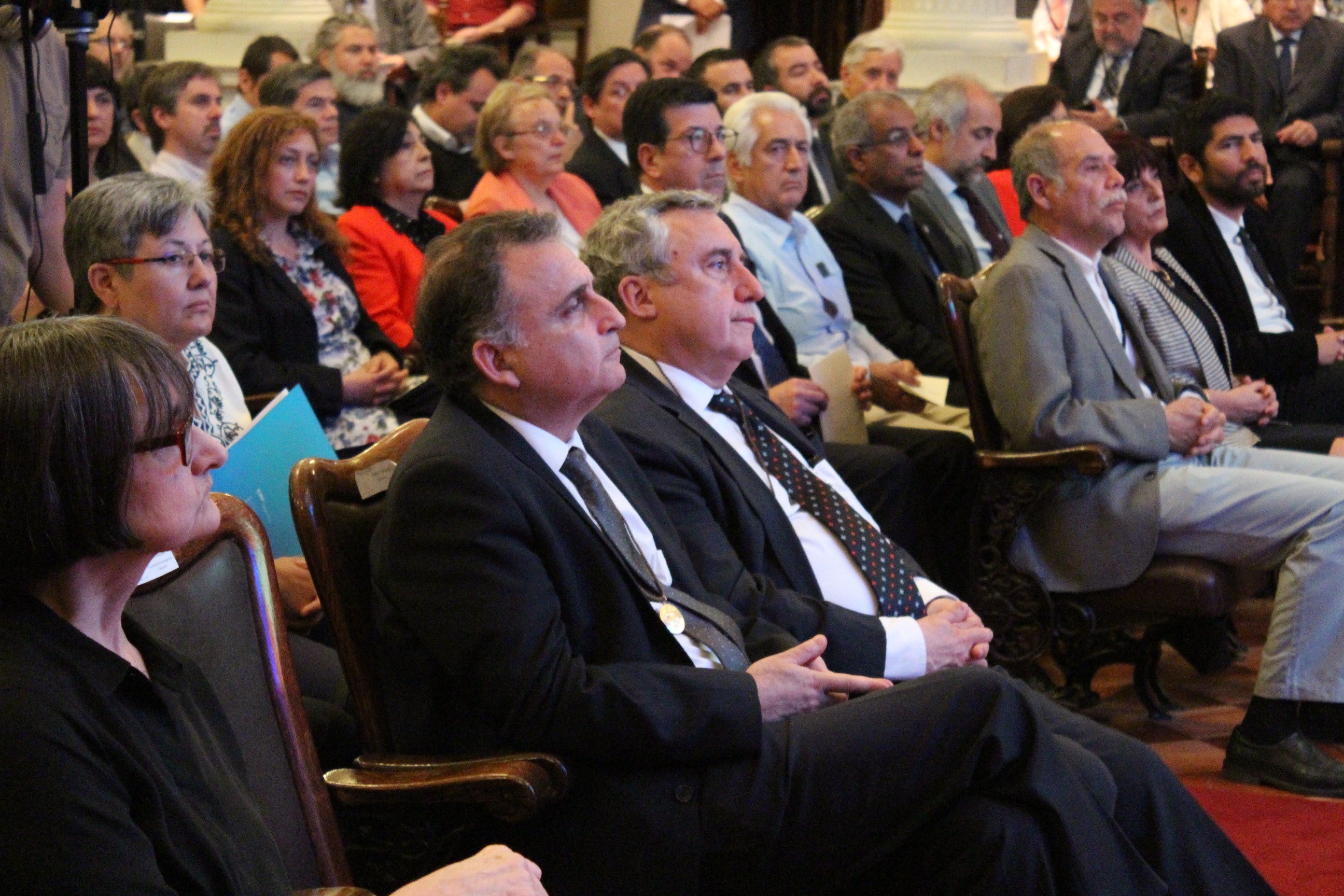 Por otra parte, enfatizó la importancia que mantiene la Casa de Bello como referente nacional y regional, lo que se refleja en los principales rankings de producción científica. “Seguimos siendo una de las universidades más potentes de Latinoamérica con una productividad que se refleja en los cerca de 2.270 publicaciones promedio anuales entre el 2013 y el 2016”. No obstante, agregó, más allá de las cifras, nuestros académicos han “descubierto nuevos fenómenos astronómicos, supernovas y constelaciones; avanzamos en el descubrimiento de las bases moleculares de enfermedades neurodegenerativas, inmunológicas y cardiovasculares… Nuestros ingenieros lanzan satélites al espacio, crean robots para la exploración minera y modernizan la conexión digital y la capacidad de análisis de mega datos. Nuestros artistas producen obras de arte, películas y documentales de trascendencia internacional que se difunden activamente impactando a la sociedad…”, señaló como una muestra de los muchos aportes de relevancia impulsados por académicos de la Casa de Bello.