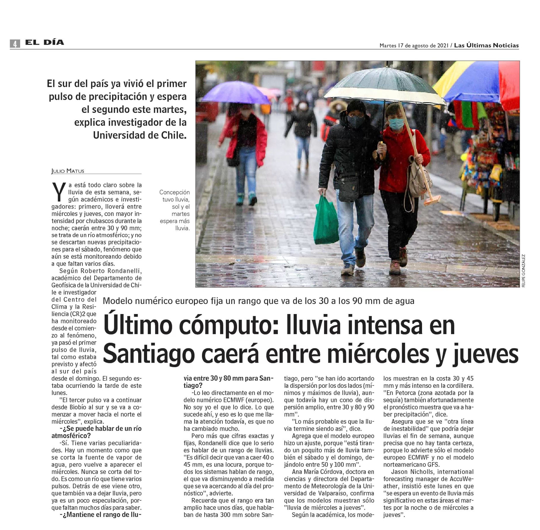 Último cómputo: lluvia intensa en Santiago caerá entre miércoles y jueves (Las Últimas Noticias)