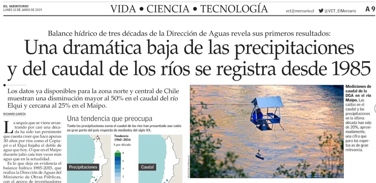 Una dramática baja de las precipitaciones y del caudal de los ríos se registra desde 1985 (El Mercurio)