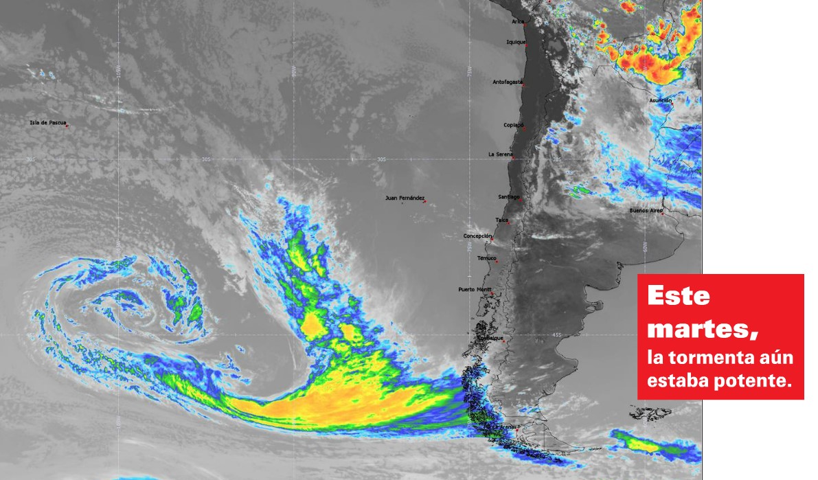 Un sistema frontal se acerca a Chile, el que dejará agua en varias ciudades, especialmente del sur. A la capital llegará entre sábado y domingo pero muy disminuido. «La tormenta está madura en este momento, pero se va a ir debilitando en la medida que avance al continente. Va a llover en la zona austral a partir de este martes y luego la nube se va a mover al norte. A Concepción va a llegar el viernes. A la zona central llegará con poca intensidad. Santiago va a estar entre que llueve y no llueve. Serán unos pocos milímetros», asegura Roberto Rondanelli, investigador del (CR)2, Centro de Ciencia del Clima y la Resiliencia de la U. de Chile.
